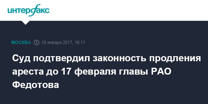 Суд подтвердил законность продления ареста до 17 февраля главы РАО Федотова
