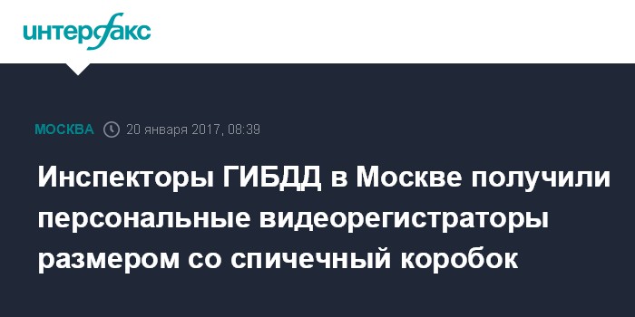 Москва. 20 января. INTERFAX.RU - Управление ГИБДД Москвы получило 960 персональных видеорегистраторов для инспекторов дорожно-патрульной службы, сообщает официальные портал столичной мэрии в пятницу.