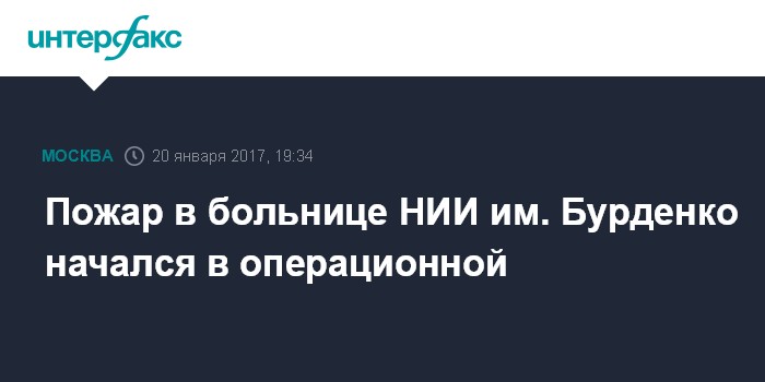 Москва. 20 января. INTERFAX.RU - Пожар, вспыхнувший в здании НИИ нейрохирургии имени Бурденко в центре Москвы, начался в одной из операционных, сообщил "Интерфаксу" в пятницу источник в экстренных службах города.