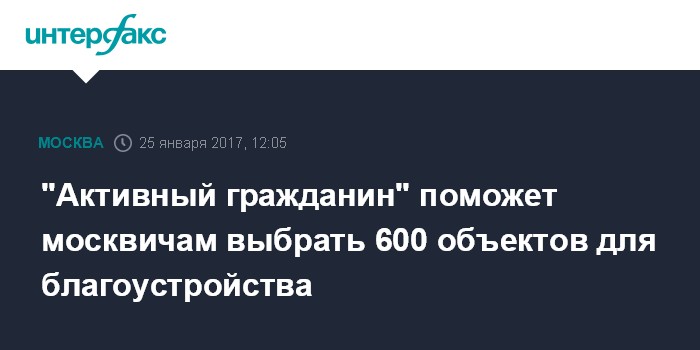 "Активный гражданин" поможет москвичам выбрать 600 объектов для благоустройства