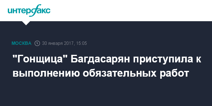 "Гонщица" Багдасарян приступила к выполнению обязательных работ