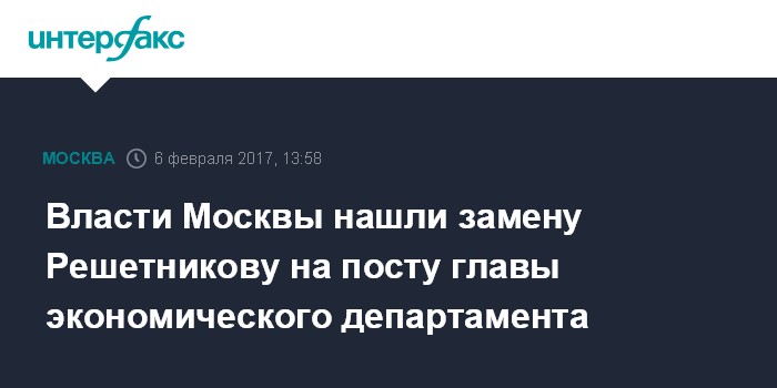 Власти Москвы нашли замену Решетникову на посту главы экономического департамента