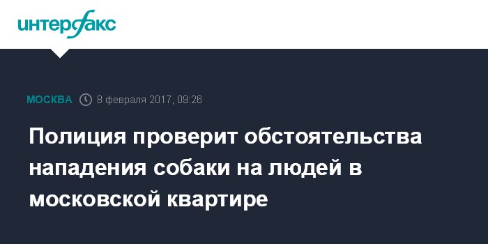Москва. 8 февраля. INTERFAX.RU - Полиция проводит проверку по факту нападения собаки в одной из квартир на юго-востоке Москвы, сообщили "Интерфаксу" в среду в пресс-службе столичного главка МВД.