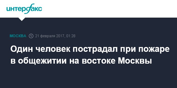 Один человек пострадал при пожаре в общежитии на востоке Москвы
