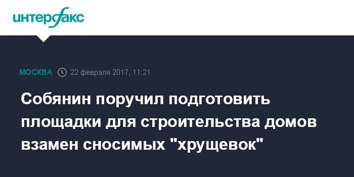 Москва. 22 февраля. INTERFAX.RU - Мэр Москвы Сергей Собянин поручил подготовить первые стартовые площадки для строительства домов под новую программу сноса "хрущевок". Об этом он написал в твиттере в среду.