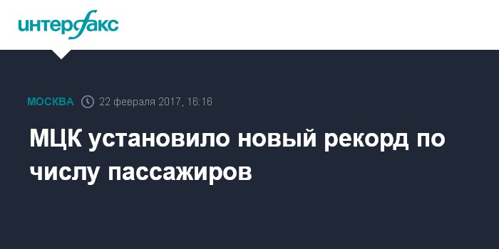 Москва. 22 февраля. INTERFAX.RU - Новый рекорд пассажиропотока побит на Московском центральном кольце (МЦК), сообщил "Интерфаксу" в среду заммэра столицы Максим Ликсутов.