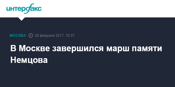 Москва. 26 февраля. INTERFAX.RU - В центре Москвы завершилось шествие памяти оппозиционного политика Бориса Немцова.