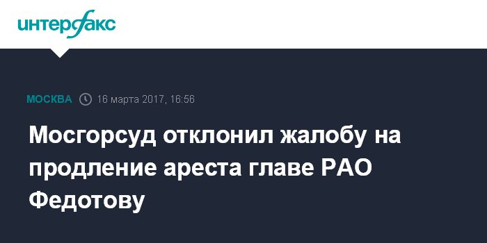 Мосгорсуд отклонил жалобу на продление ареста главе РАО Федотову
