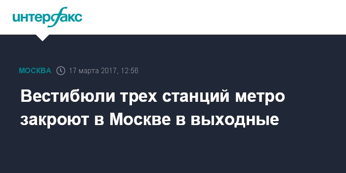 Москва. 17 марта. INTERFAX.RU - В рамках программы благоустройства в предстоящие выходные закроют вестибюли нескольких станций Московского метрополитена, сообщили "Интерфаксу" в пресс-службе подземки.