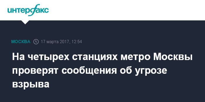 Москва. 17 марта. INTERFAX.RU - Сразу четыре станции московского метрополитена проверяют на наличие взрывных устройств после сообщения от неизвестного, сообщил "Интерфаксу" источник в силовых структурах.