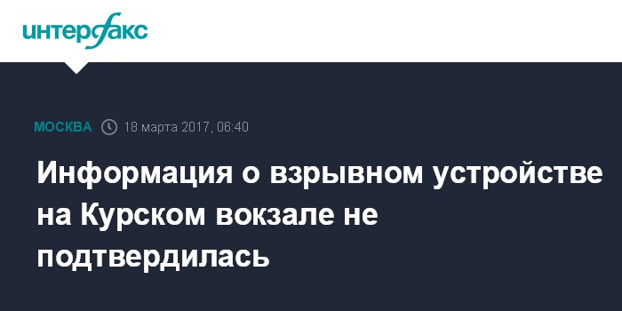 Москва. 18 марта. INTERFAX.RU - Информация об угрозе взрыва на Курском вокзале не нашла подтверждения, сообщил "Интерфаксу" в субботу источник в правоохранительных органах.