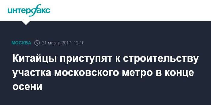 Москва. 21 марта. INTERFAX.RU - Строительство юго-западного участка Второго кольца метро, где подрядчиком выступает китайская корпорация China Railway Construction Corporation (CRCC), планируется начать в конце осени, сообщил во вторник руководитель департамента строительства Москвы Андрей Бочкарев.