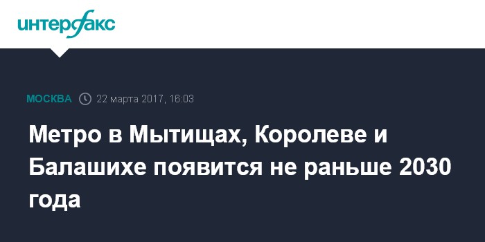 Метро в Мытищах, Королеве и Балашихе появится не раньше 2030 года