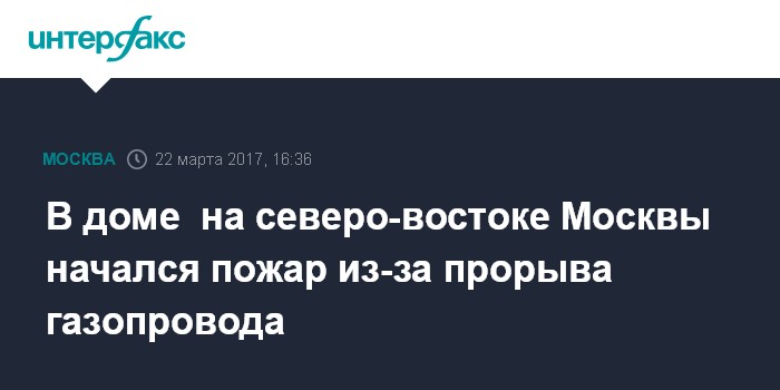 Москва. 22 марта. INTERFAX.RU - Прорыв газовой трубы стал причиной пожара в жилом доме на северо-востоке Москвы, сообщил "Интерфаксу" в среду источник в экстренных службах.