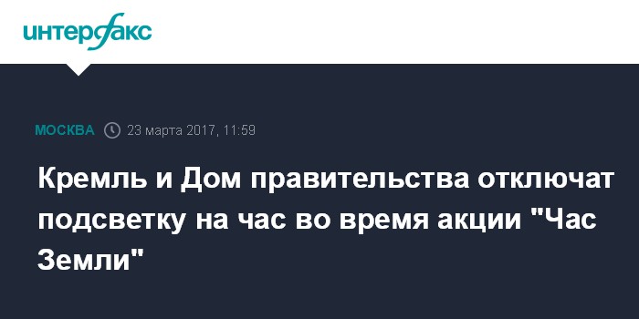 Москва. 23 марта. INTERFAX.RU - Московский Кремль и Дом правительства на Краснопресненской набережной в ближайшую субботу, 25 марта, по уже сложившейся традиции на один час - с 20:30 до 21.30 по Москве - погрузятся в темноту.