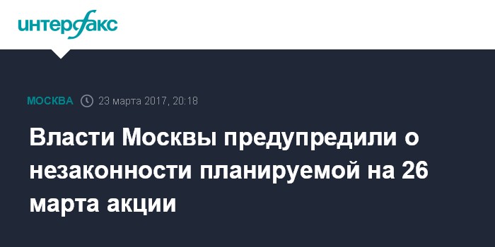 Власти Москвы предупредили о незаконности планируемой на 26 марта акции