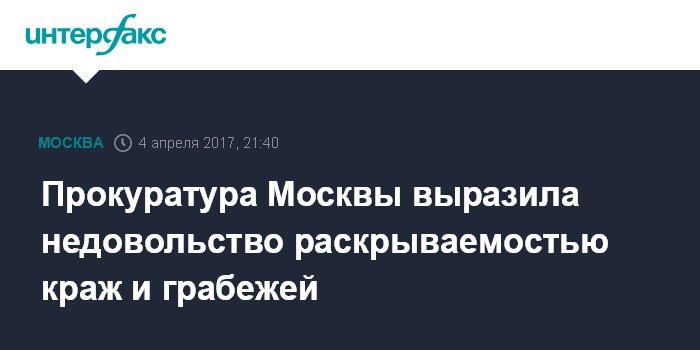 Москва. 4 апреля. INTERFAX.RU - В прокуратуре Москвы подвергли критике работу правоохранительных органов столицы по раскрытию преступлений небольшой и средней тяжести, таких, как кражи, мошенничества и грабежи.