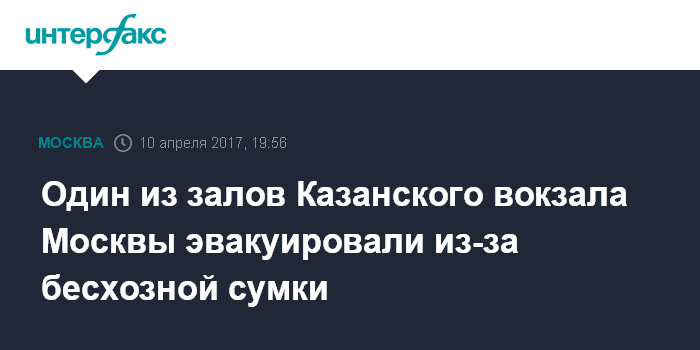 Москва. 10 апреля. INTERFAX.RU - Из-за обнаружения бесхозной сумки в одном из залов Казанского вокзала в Москве была проведена частичная эвакуация, сообщили "Интерфаксу" в пресс-службе транспортного управления МВД по Центральному федеральному округу.