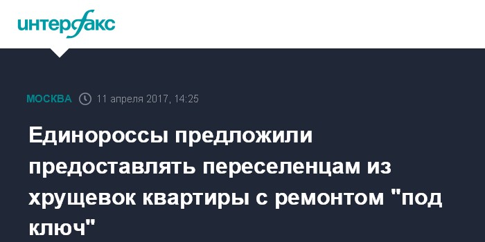Единороссы предложили предоставлять переселенцам из хрущевок квартиры с ремонтом "под ключ"