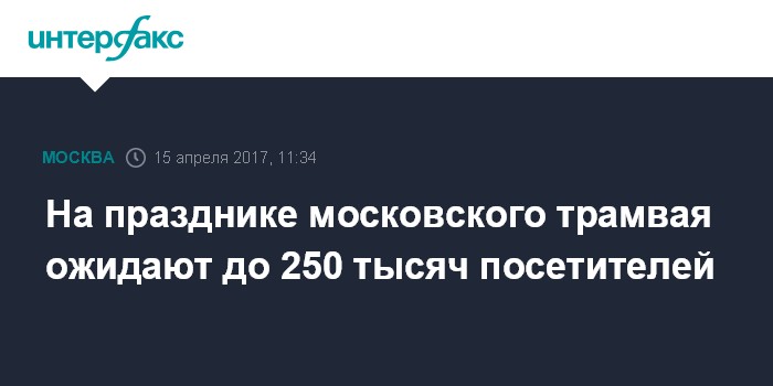 Москва. 15 апреля. INTERFAX.RU - На празднике столичного трамвая, который проходит в субботу в центре Москвы, ожидается до 250 тысяч гостей, сообщил журналистам гендиректор ГУП "Мосгортранс" Евгений Михайлов.