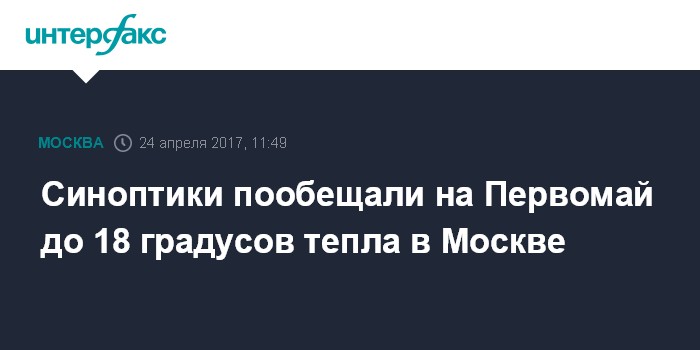 Синоптики пообещали на Первомай до 18 градусов тепла в Москве