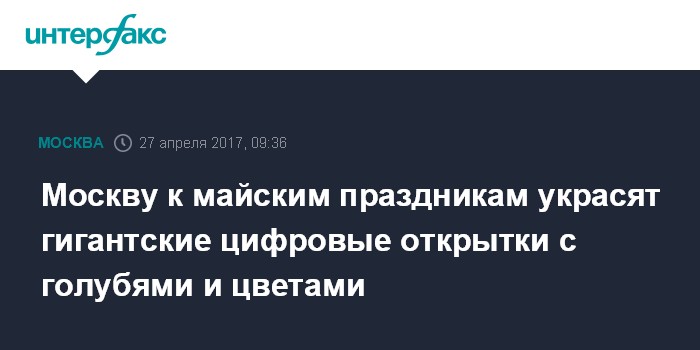 Москву к майским праздникам украсят гигантские цифровые открытки с голубями и цветами