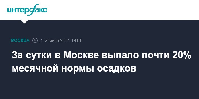 За сутки в Москве выпало почти 20% месячной нормы осадков