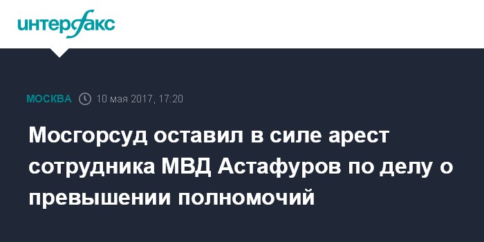 Мосгорсуд оставил в силе арест сотрудника МВД Астафуров по делу о превышении полномочий