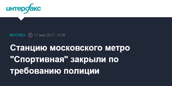 Москва. 17 мая. INTERFAX.RU - Станция московского метро "Спортивная" была закрыта в среду днем по требованию полиции, сообщили "Интерфаксу" в среду в пресс-службе московского метрополитена.
