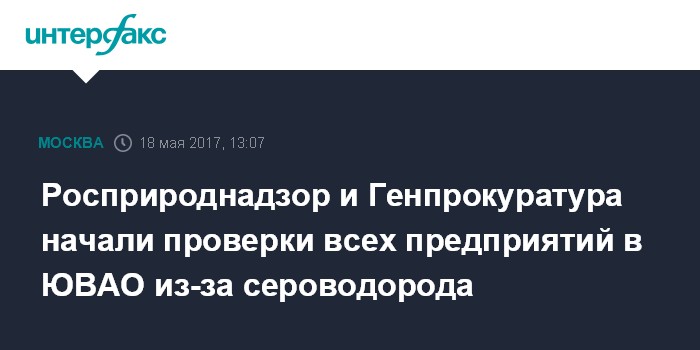 Москва. 18 мая. INTERFAX.RU - Росприроднадзор и Генпрокуратура проводят проверки всех крупных предприятий на юго-востоке Москвы в связи с выбросами сероводорода, сообщил журналистам глава Минприроды Сергей Донской.