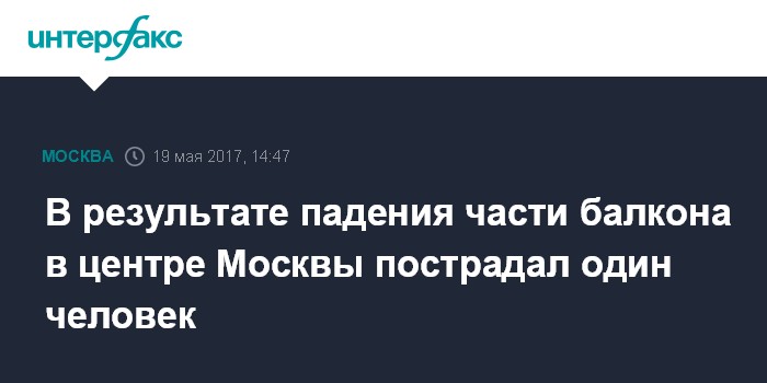 В результате падения части балкона в центре Москвы пострадал один человек