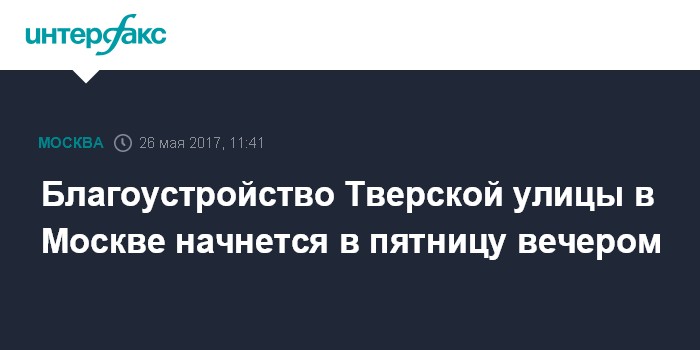 Москва. 26 мая. INTERFAX.RU - Работы по программе "Моя улица" вечером 26 мая стартуют на Тверской и 1-й Тверской-Ямской улицах, в связи с чем будет ограничено движение транспорта, сообщает официальный сайт московской мэрии.