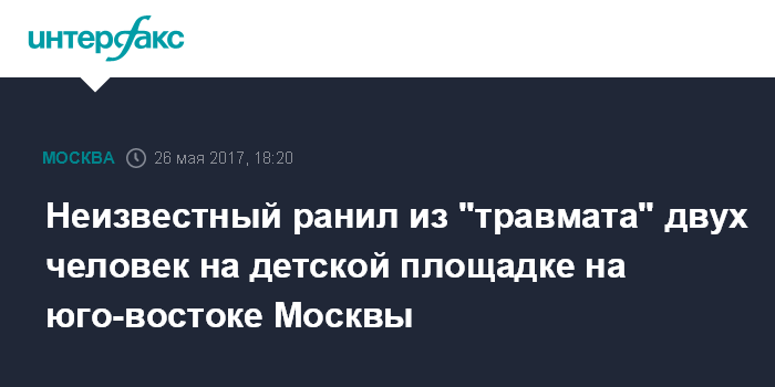 Москва. 26 мая. INTERFAX.RU - Неизвестный мужчина открыл стрельбу из травматического пистолета на детской площадке на юго-востоке Москвы и ранил двух человек, сообщил "Интерфаксу" в пятницу информированный источник.