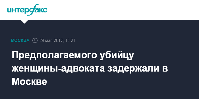 Москва. 29 мая. INTERFAX.RU - В Следственном комитете РФ сообщили о задержании подозреваемого в убийстве женщины-адвоката в апреле в Москве.