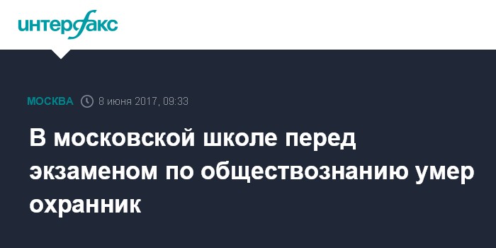 "Тело охранника было обнаружено сегодня утром на полу, на рабочем месте в здании школы номер 1065, где был расположен пункт проведения экзамена. На место прибыли "скорая помощь" и полиция. Врачи констатировали факт смерти в результате инсульта", - рассказал собеседник агентства.