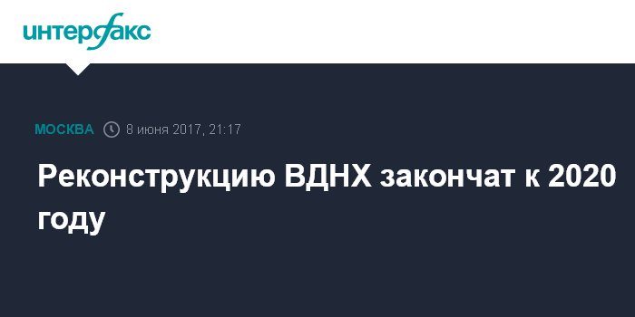 Реконструкцию ВДНХ закончат к 2020 году