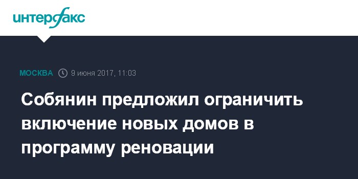 Москва. 9 июня. INTERFAX.RU - Мэр Москвы Сергей Собянин предложил ограничить вхождение новых домов в программу реновации ветхого жилья.