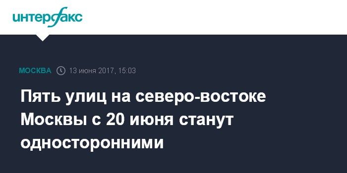 Москва. 13 июня. INTERFAX.RU - Новая схема движения будет введена на пяти улицах в Северо-Восточном округе Москвы с 20 июня, сообщили "Интерфаксу" в пресс-службе Центра организации дорожного движения (ЦОДД) во вторник.