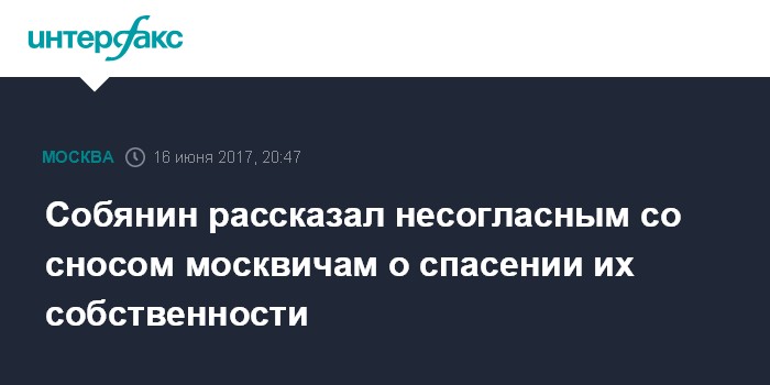 Собянин рассказал несогласным со сносом москвичам о спасении их собственности