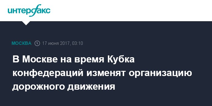 В Москве на время Кубка конфедераций изменят организацию дорожного движения