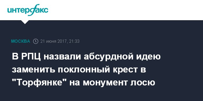 Москва. 21 июня. INTERFAX.RU - В Русской церкви подвергли критике предложение о том, чтобы демонтировать поклонный крест в парке "Торфянка" в Лосиноостровском районе Москвы и установить на его месте памятник лосю.