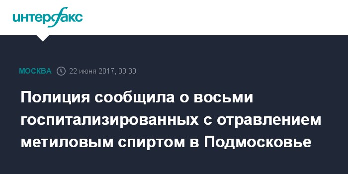 Полиция сообщила о восьми госпитализированных с отравлением метиловым спиртом в Подмосковье
