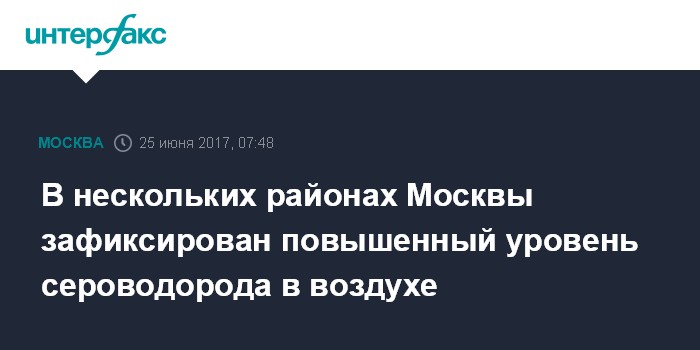 Ранее "Интерфакс" сообщал об аномальном уровне сероводорода в московском воздухе 17 и 18 мая.