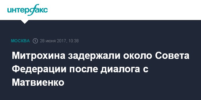 Москва. 28 июня. INTERFAX.RU - Главу московского отделения партии "Яблоко" Сергея Митрохина задержали в ходе стихийного пикета, прошедшего у здания Совета Федерации против закона о реновации московского жилья, сразу после короткого диалога с председателем верхней палаты российского парламента Валентиной Матвиенко.