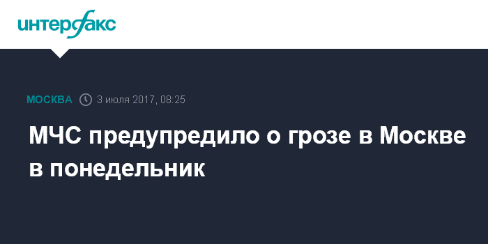Москва. 3 июля. INTERFAX.RU - Гроза и сильный ветер ожидаются в Москве в понедельник, сообщили "Интерфаксу" в пресс-службе столичного главка МЧС.