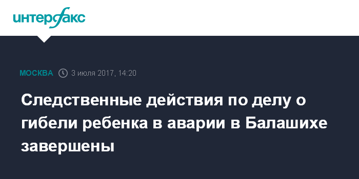 Следственные действия по делу о гибели ребенка в аварии в Балашихе завершены