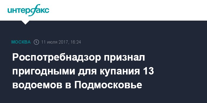 Москва. 11 июля. INTERFAX.RU - Положительные заключения управления Роспотребнадзора по Московской области о соответствии водных объектов нормам получили 13 водоемов Подмосковья, сообщается на сайте регионального правительства со ссылкой на пресс-службу ведомства.