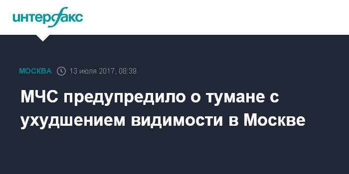 Москва. 13 июля. INTERFAX.RU - Главное управление МЧС по городу Москве предупреждает жителей столицы об ухудшении видимости из-за тумана.