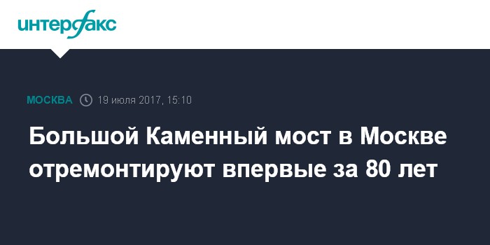 Москва. 19 июля. INTERFAX.RU - Большой Каменный мост в центре Москвы будет капитально отремонтирован. Об этом сообщили в пресс-службе департамента по конкурентной политике.
