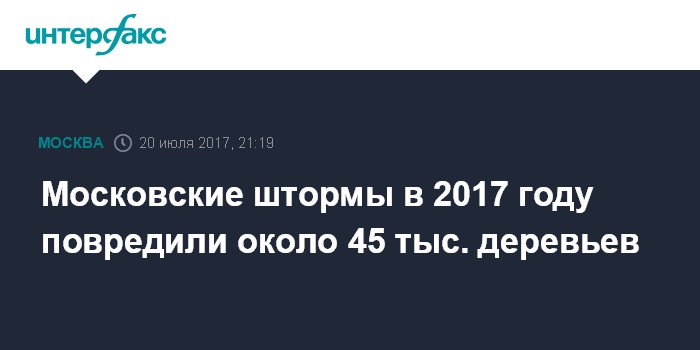 Московские штормы в 2017 году повредили около 45 тыс. деревьев